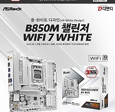 게이밍 성능과 최신 연결성 및 사용자 친화적 기능, 디앤디컴 애즈락 B850M 챌린저 WIFI 7 WHITE 메인보드 국내 출시