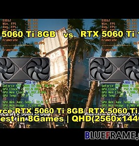 NVIDIA GeForce RTX 5060 Ti 8GB vs GeForce RTX 5060 Ti 16GB + R5 9600X | Test in 8 Games | QHD(2560x1440)