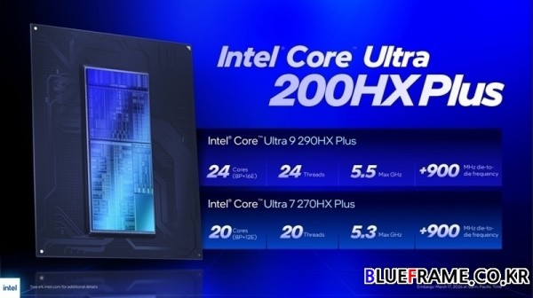 고성능 게이밍, 스트리밍, 콘텐츠 제작 및 워크스테이션 환경에 최적화된 인텔 코어 Ultra 200HX 플러스 시리즈는 ‘인텔 코어 Ultra 9 290HX 플러스’ 및 ‘인텔 코어 Ultra 7 270HX 플러스’ 등 두 가지 신규 프로세서를 포함한다.
