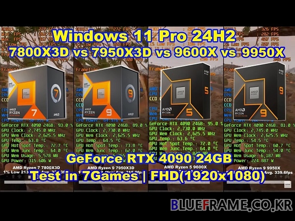 CPU | 7800X3D vs 7950X3D vs 9600X vs 9950X + RTX 4090 | Windows 11 24H2 | Test in 7 Games | FHD(1920x1080)