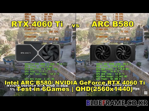GPU | Intel ARC B580 vs NVIDIA GeForce RTX 4060 Ti + R5 9600X | Test in 6 Games | QHD(2560x1440)