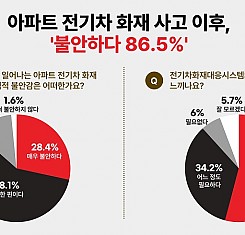응답자의 86.5% 불안감 호소, 육송 전기차 화재 관련 설문조사 10명중 8~9명(십중팔구) 아파트 전기차 화재대응시스템 설치 필요성 응답