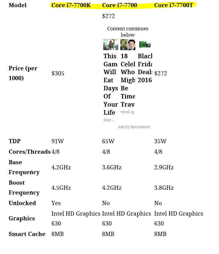 CPU/MB/RAM | [기사] 인텔 카비레이크 모든 모델 사양, 가격 공개