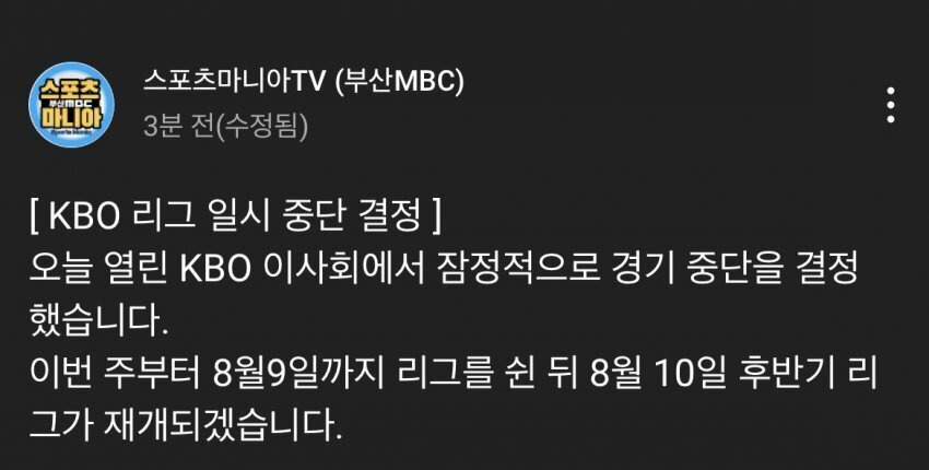 속보) 크보 리그 중단 확정