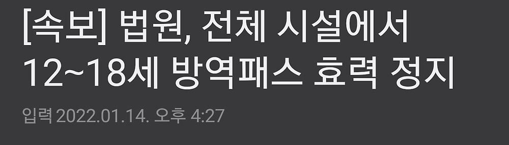 속보) 청소년 방역패스 전체 중지
