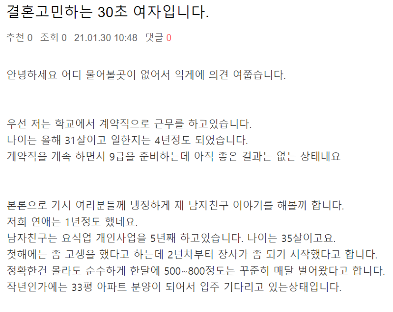결혼고민하는 30초 여자입니다