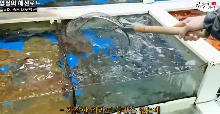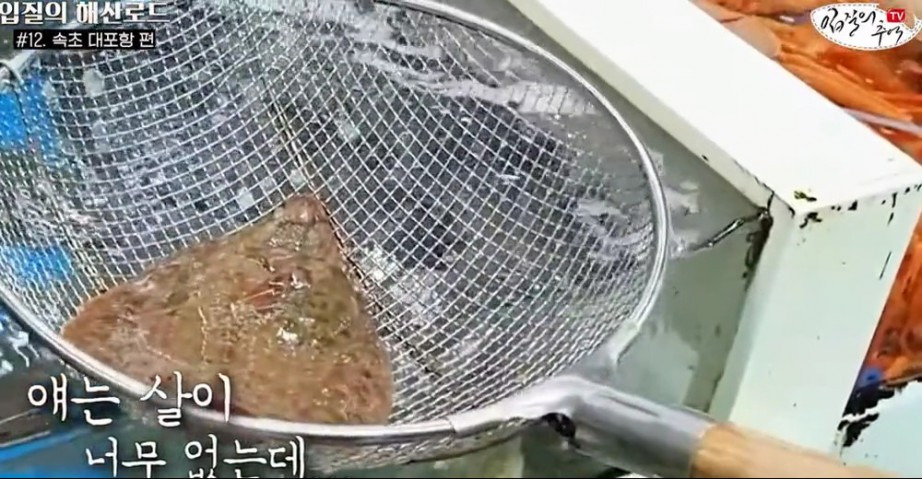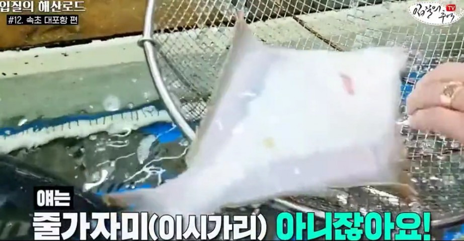 촬영중임에도 불구하고 줄가자미를 달라하자, 용가자미로 바꿔쳐서 보여줌