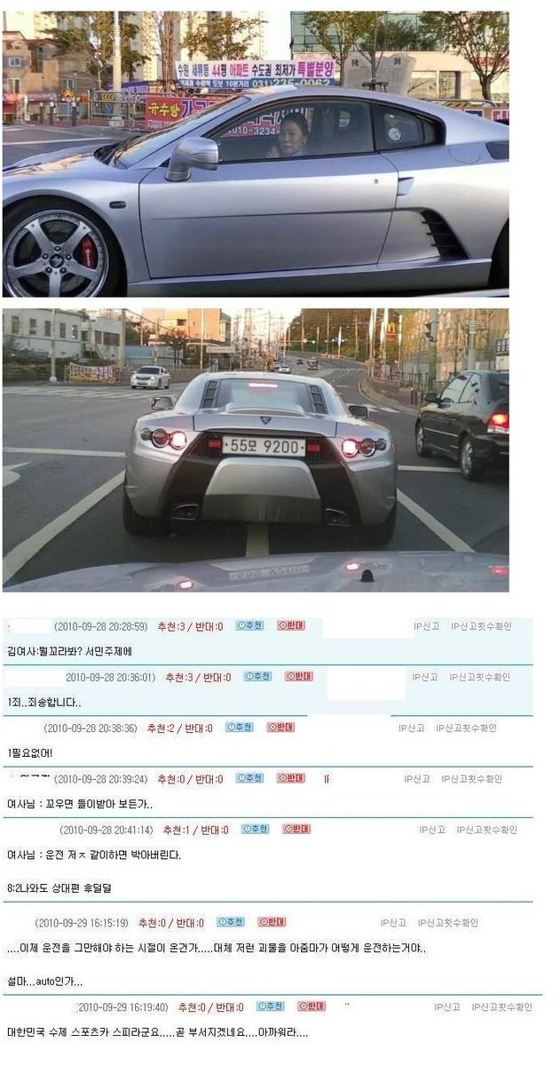 12년 전 오유에 수제 스포츠카 스피라를 끄는 여사님 짤이 올라옴