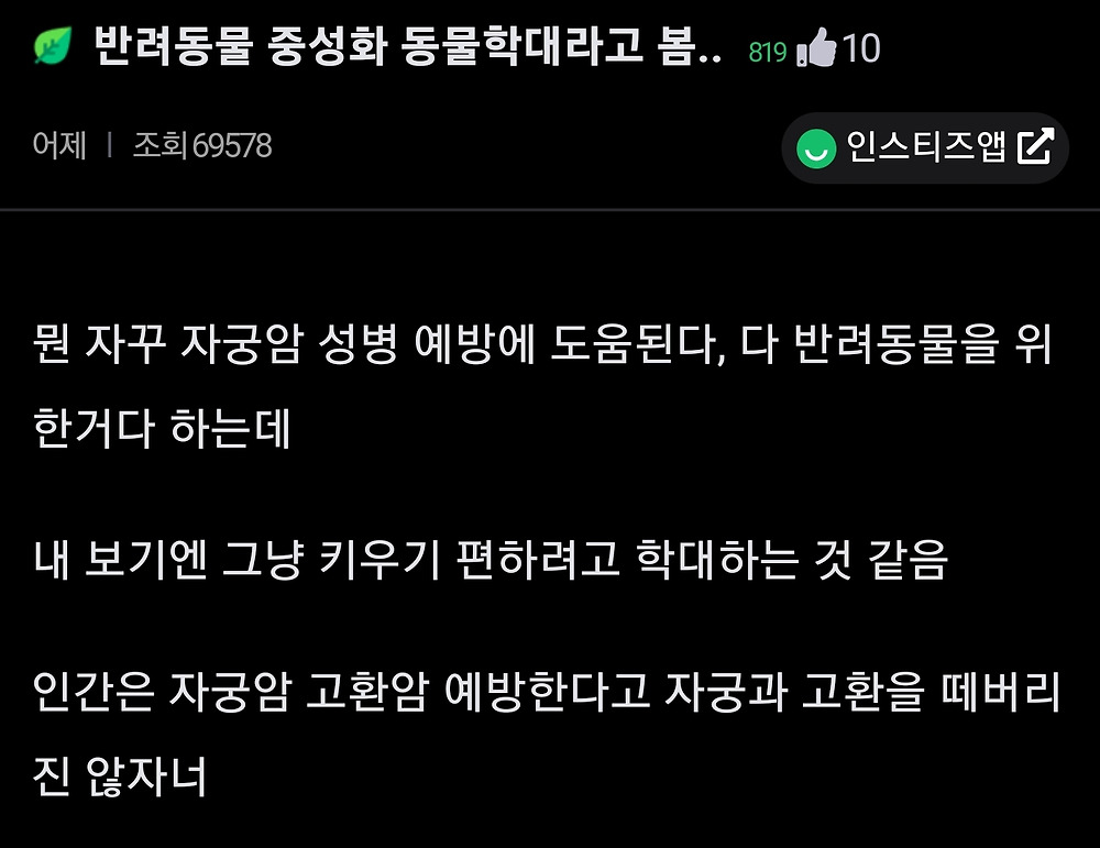 중성화도 동물학대라고 봄