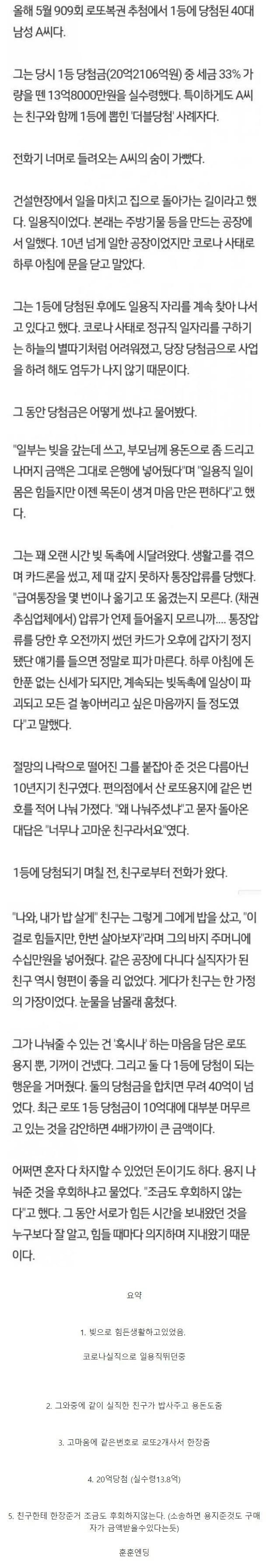 로또 당첨 레전드 일화