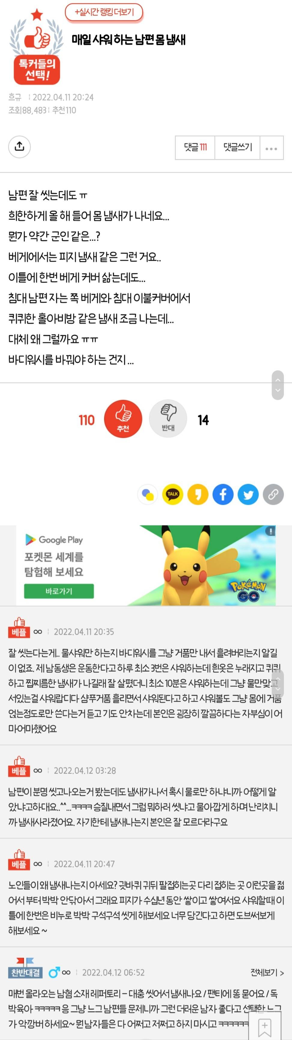 매일 샤워하는 남편 몸 냄새