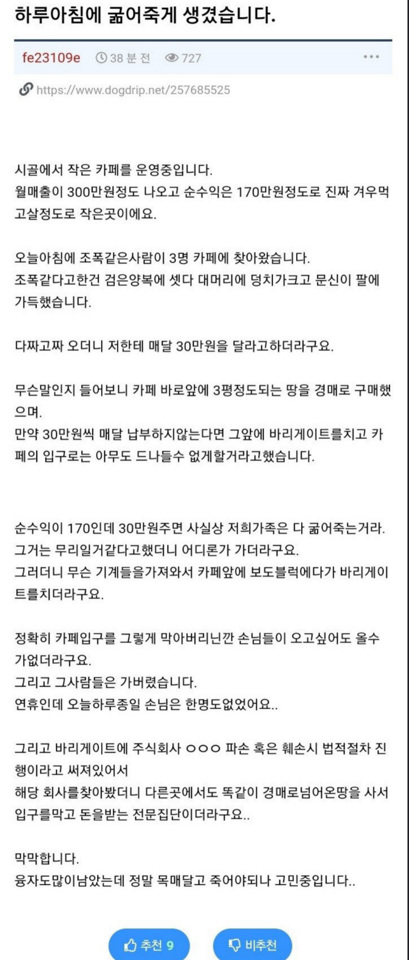 이렇게 가게 앞을 막아서 자릿세를 받아먹으려는