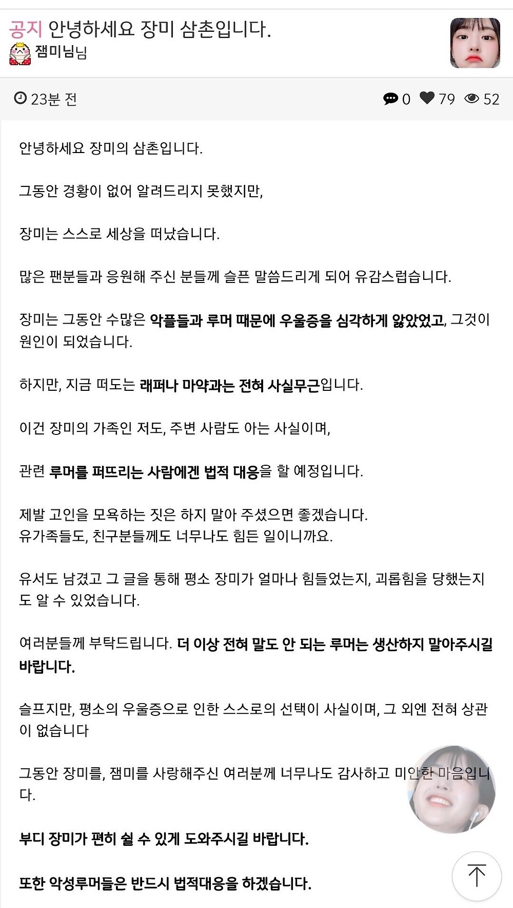 스트리머 잼미 사망