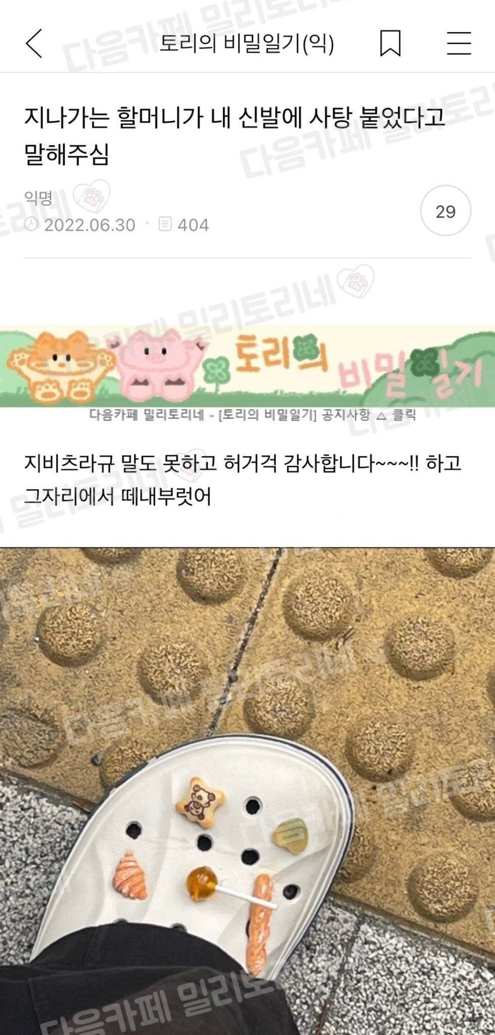 지나가는 할머니가 내 신발에 사탕 붙었다고 말해주심