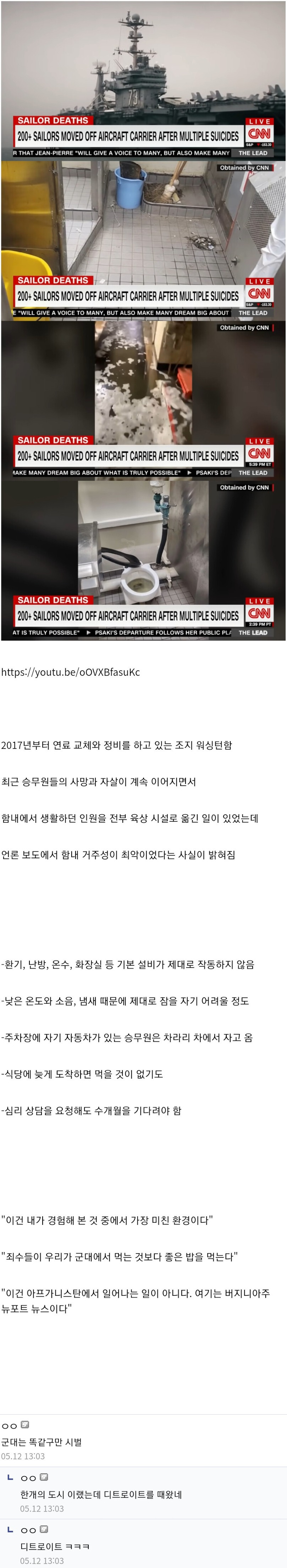 정비 중인 미국 항공모함의 충격적인 생활 환경