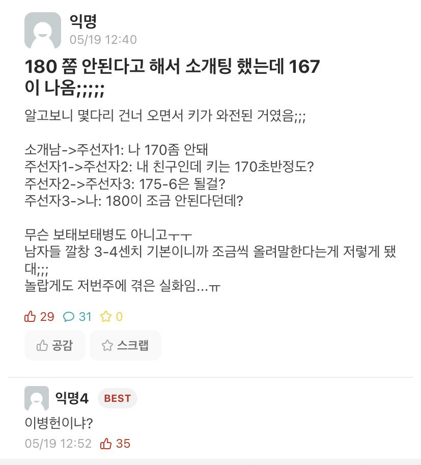 소개팅에 180좀 안된다 햇는데 167나옴