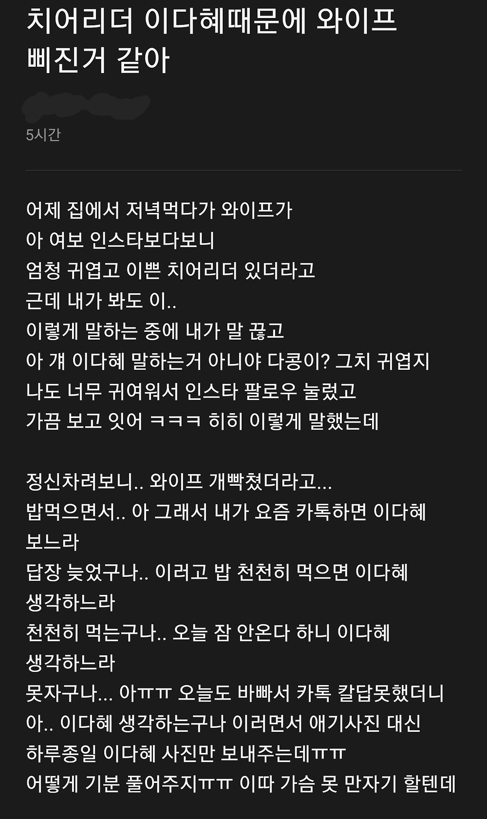 치어리더 이다혜때문에 와이프삐진거 같아