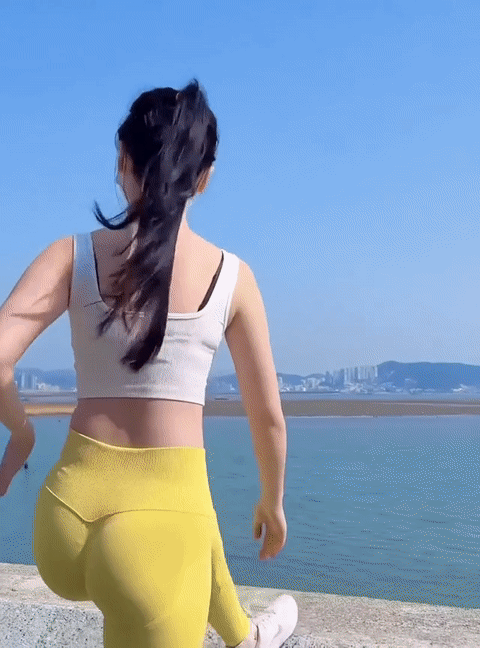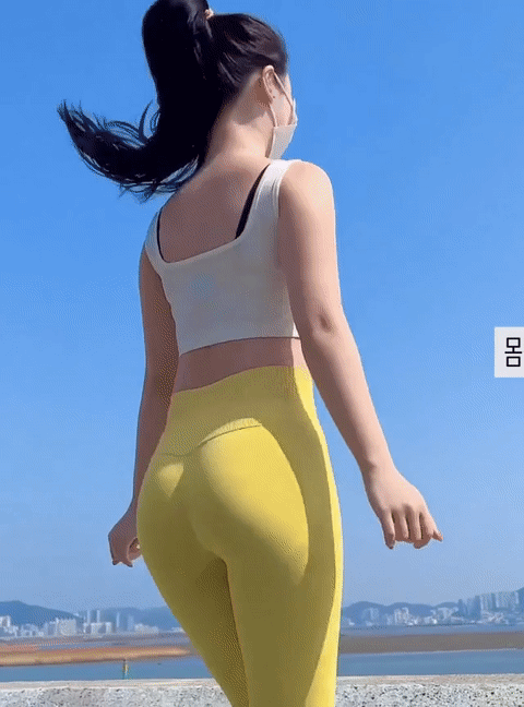 퓨딩 노랑 레깅스 입고 야외운동