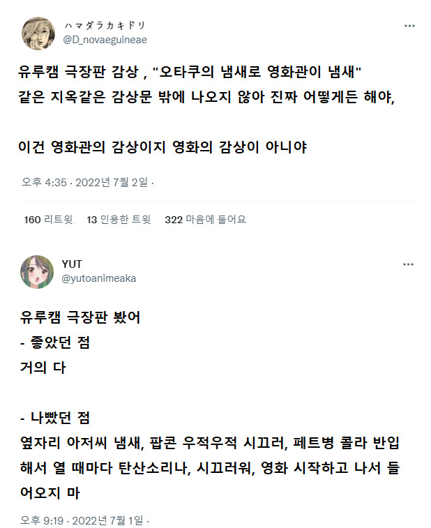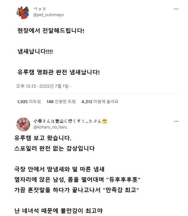애니메이션 극장판 개봉한 일본 영화관 대참사