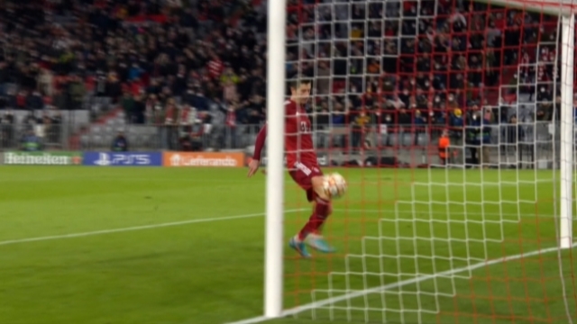 두 번째 골을 넣고 1분이 지났을까, 상대 골키퍼가 걷어낸 공이 쇄도하던 레반도프스키 다리에 튕겨 포물선을 그립니다.