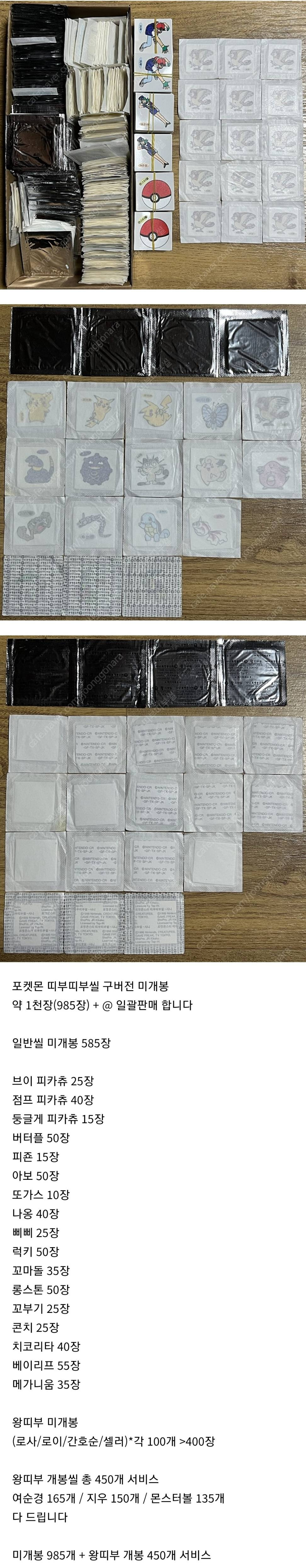 포켓몬 구버전 띠부띠부씰 1000장