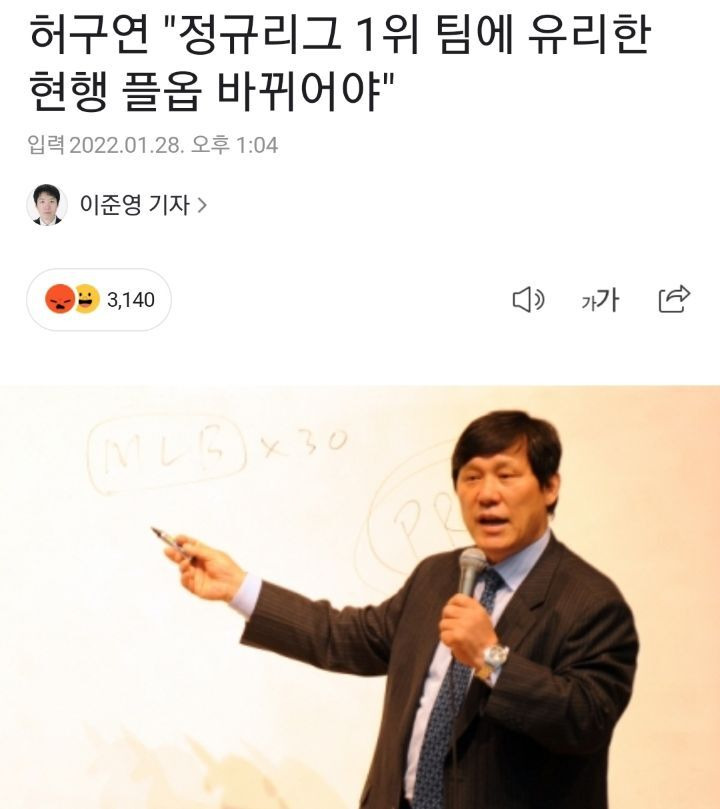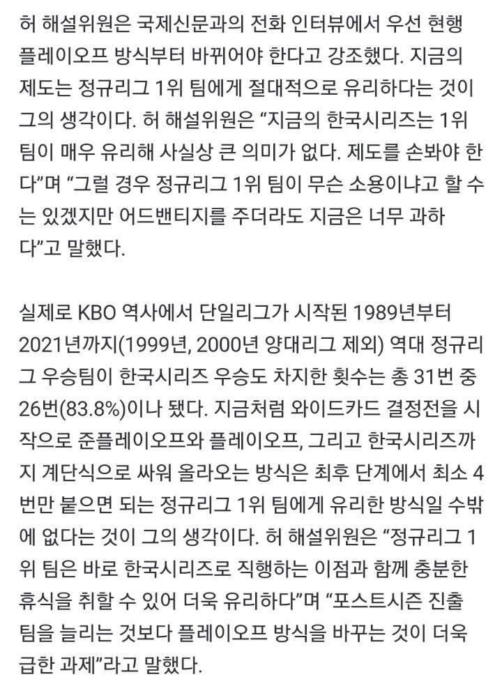 허구연 "정규 1위에게 유리한 현재 플옵 바뀌어야".jpg