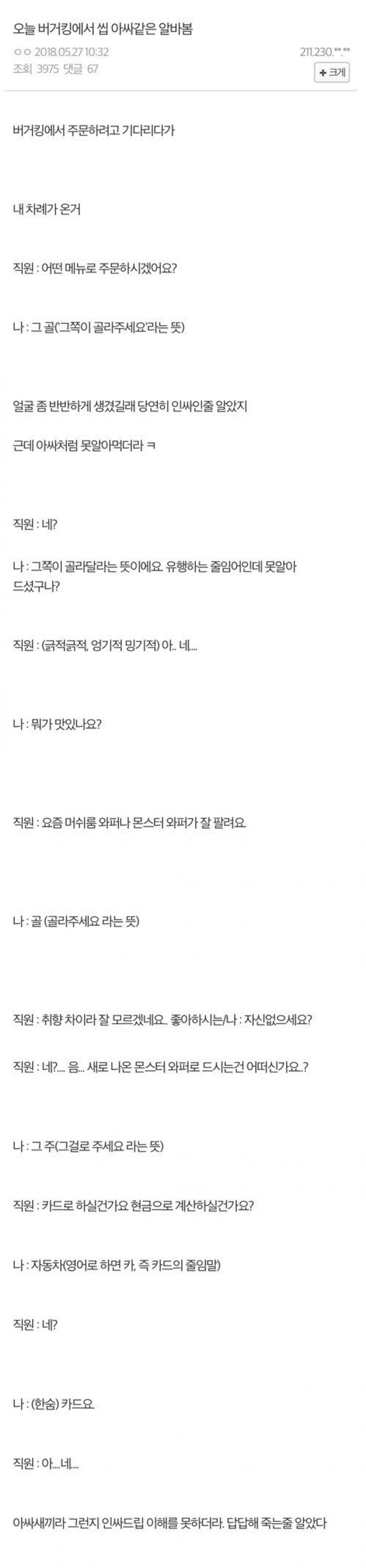 패스트푸드점에 키오스크가 생긴이유