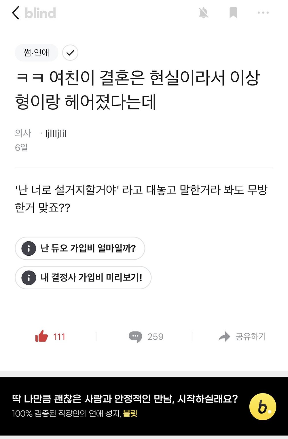 여친이 결혼은 현실이라서 이상형이랑 헤어졌다는데