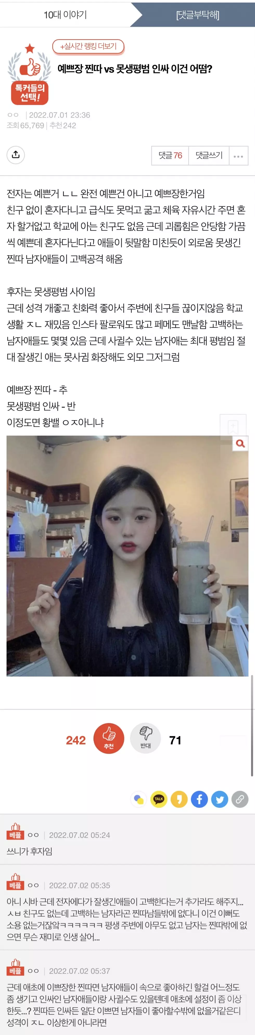 네이트판 논란... 예쁜 찐따vs못생긴 인싸...pann