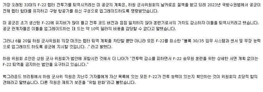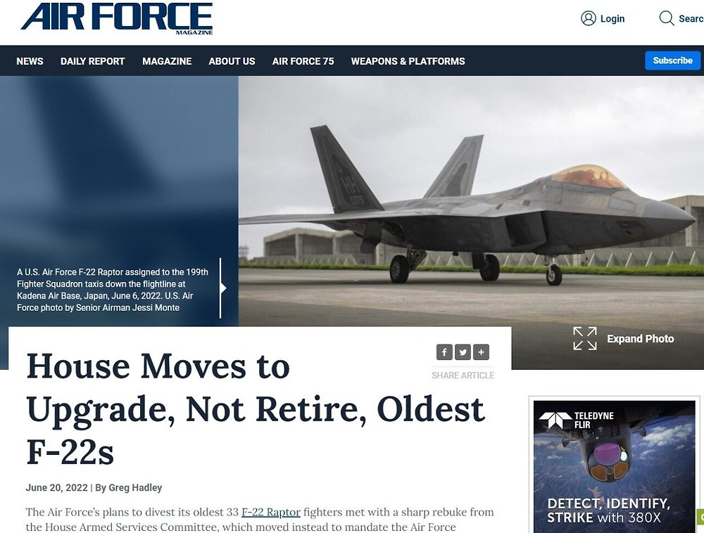 미 의회, F-22에 퇴역이 아닌 업그레이드 명령