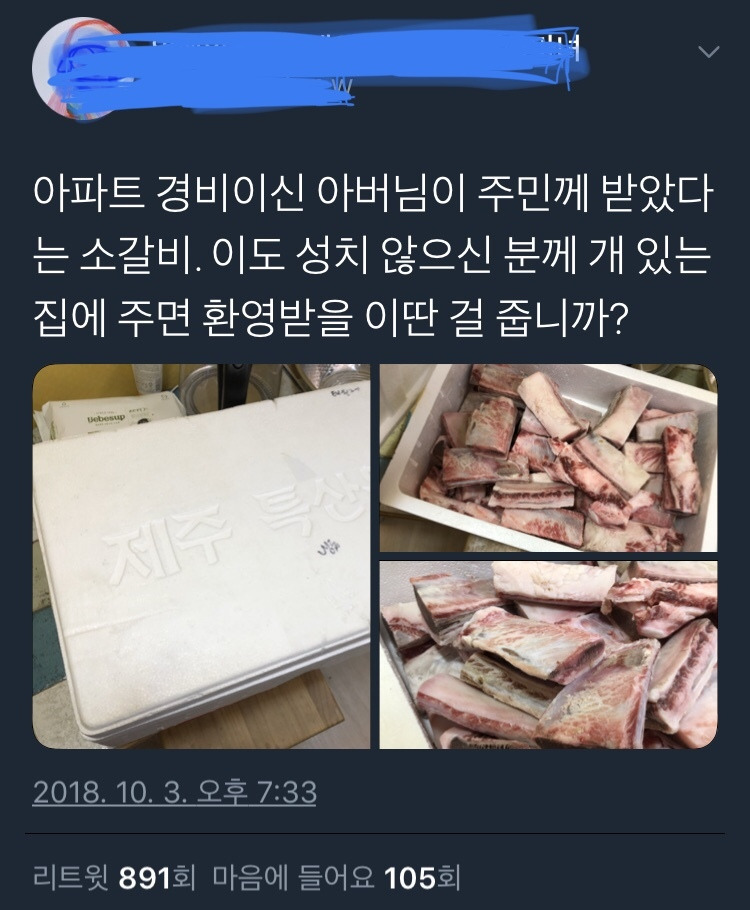 1. 경비원 하시는 아버지 아픈거 친한 주민이 듣고 고아 먹으라고 뼈 선물함