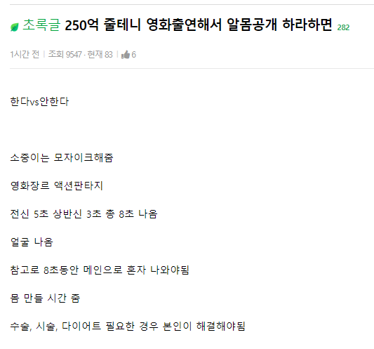 250억 줄테니 영화출연해서 알몸공개 하라하면