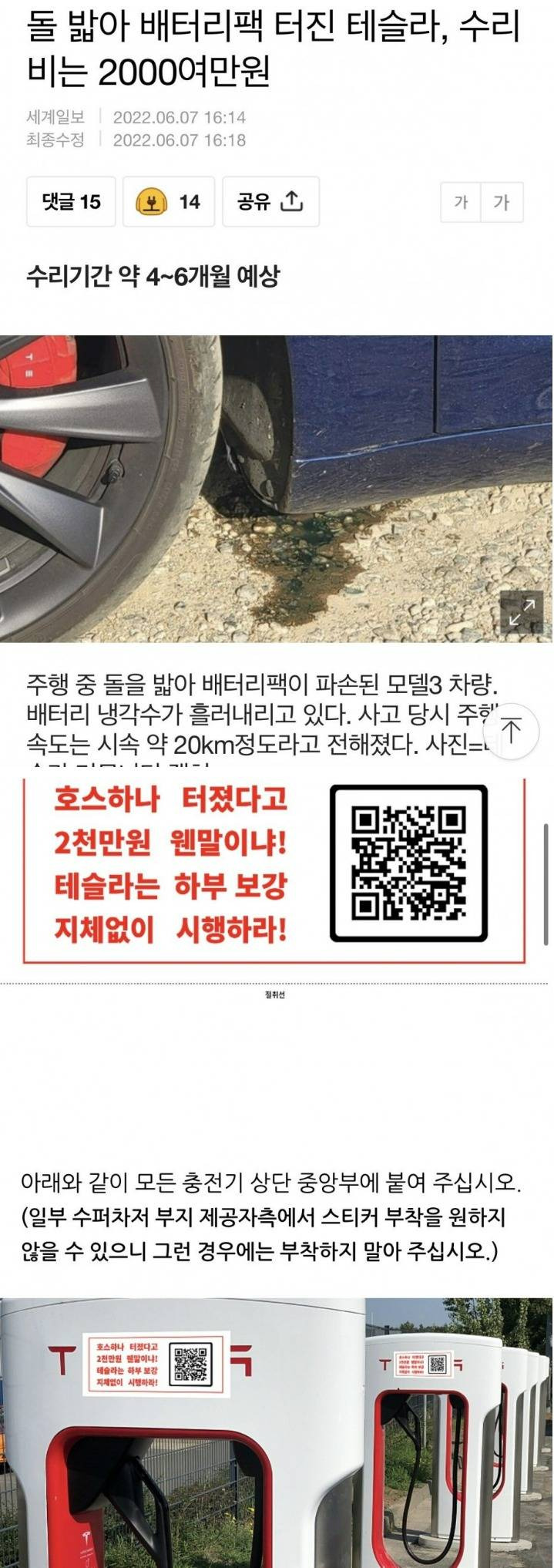 돌 밟아 배터리 터졌다는 테슬라