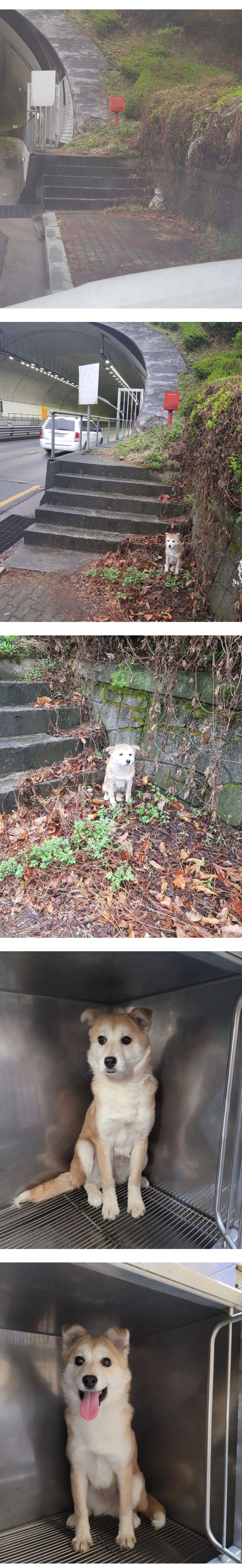 터널 옆에서 비 맞고 있던 댕댕이