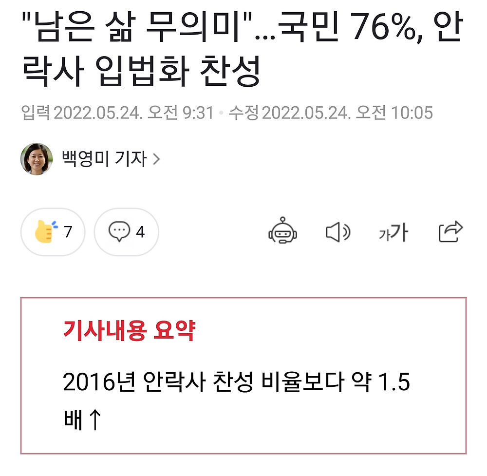 흔한 대한민국 국민 대다수 안락사 찬성 甲