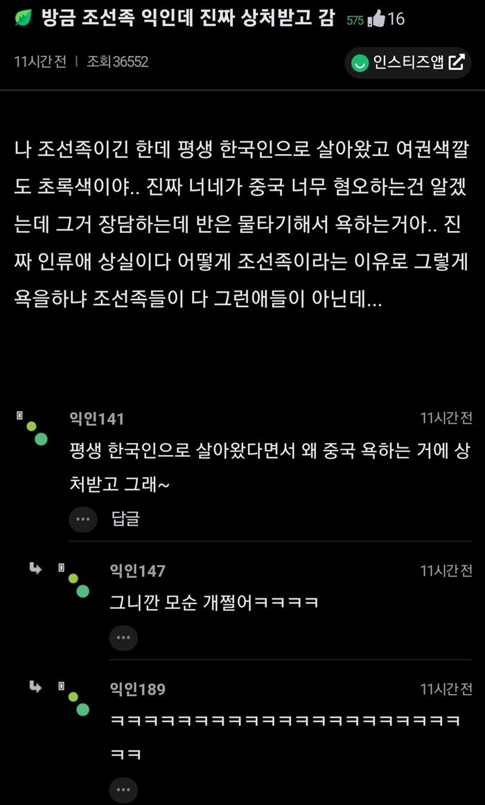 커뮤하다 진심으로 상처받은 조선족