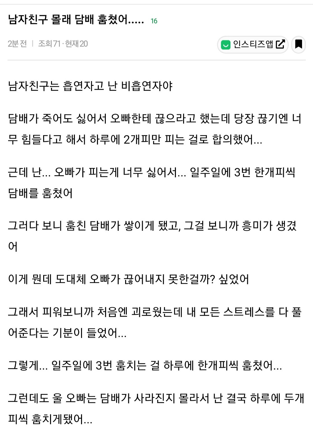 남자친구 몰래 담배 훔쳤어
