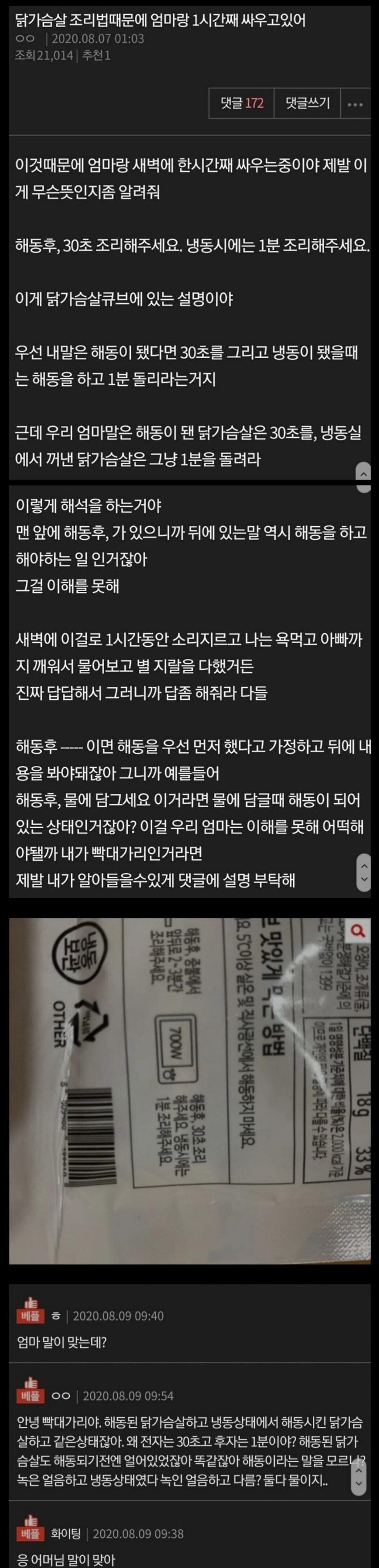 닭가슴살 조리법 때문에 엄마랑 싸운 판녀