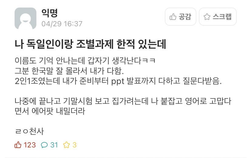 독일인이랑 조별과제 한 에타인