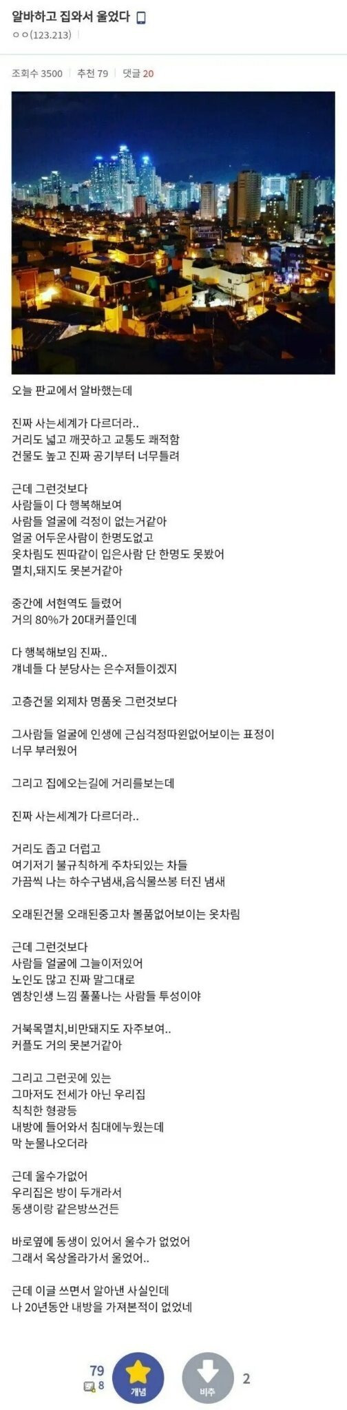 판교에서 일하다가 집와서 운 디씨인