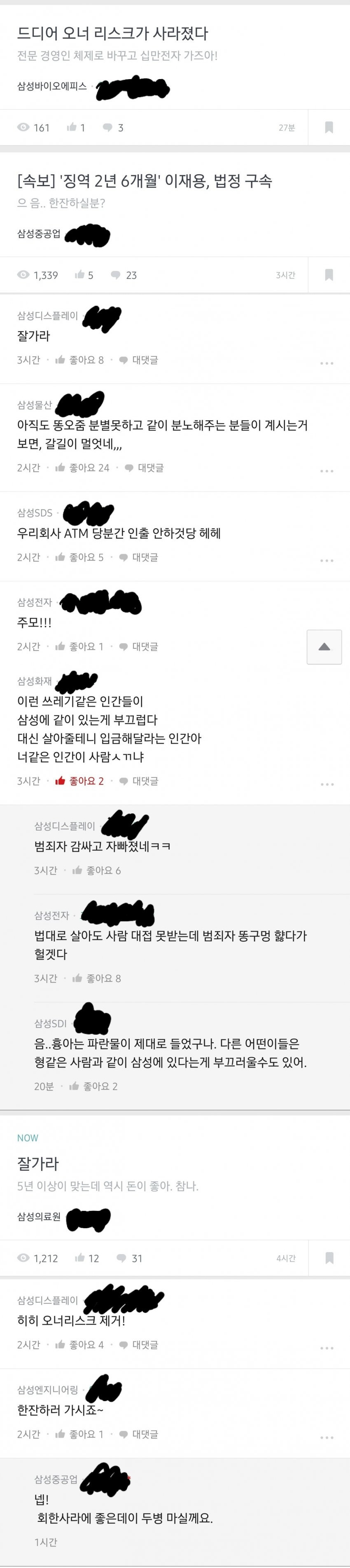 이재용 징역에 삼성직원들 반응