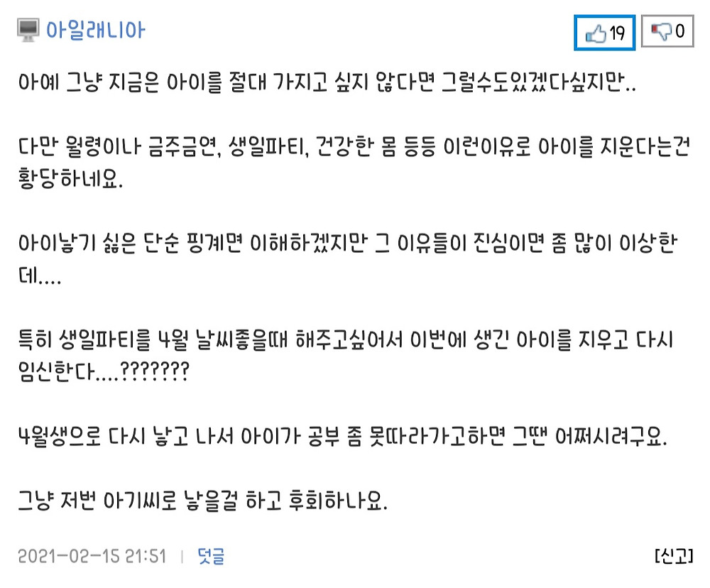 아이를 지우고 4월생 아이를 갖고싶습니다