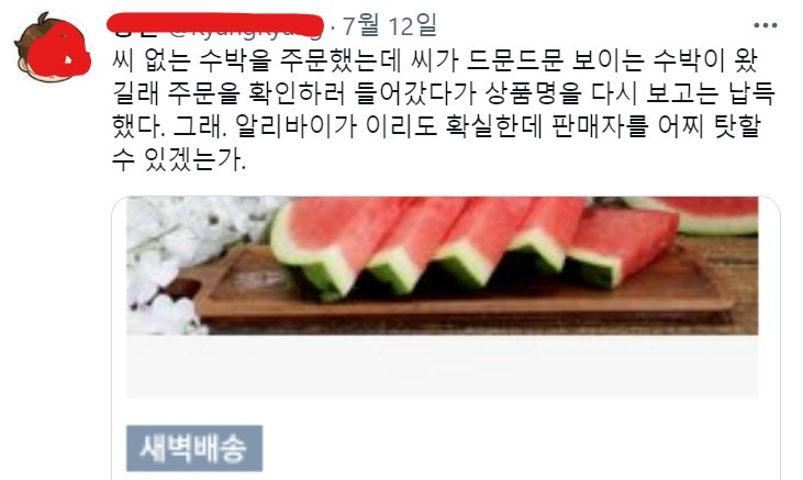 씨 없는 수박 주문한 사람