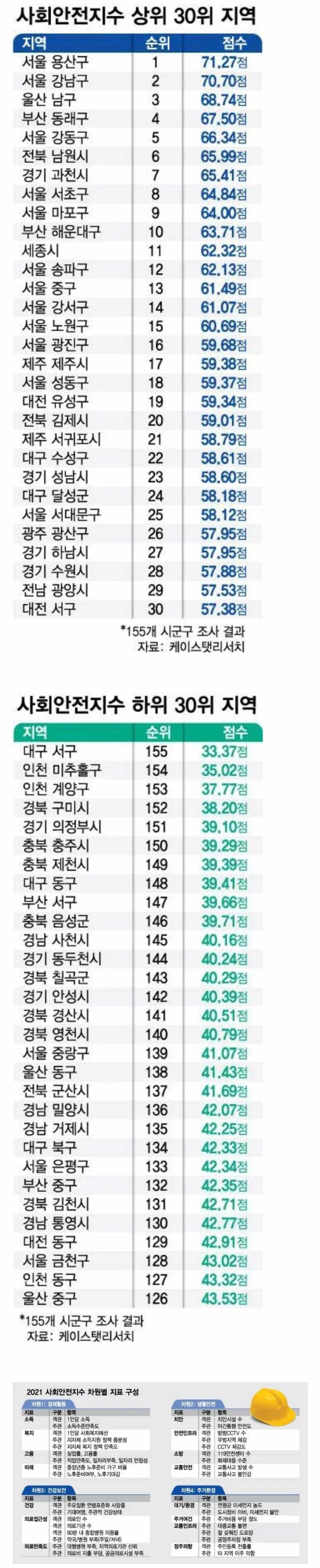 국내 살기 좋은 지역 : 상위 30 vs 하위 30