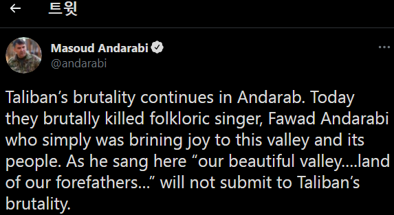한지 며칠만에 아프간 인기 가수 한명을 처형했다.