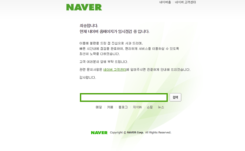 네이버 서버 다운된건가요? ㄷㄷㄷ