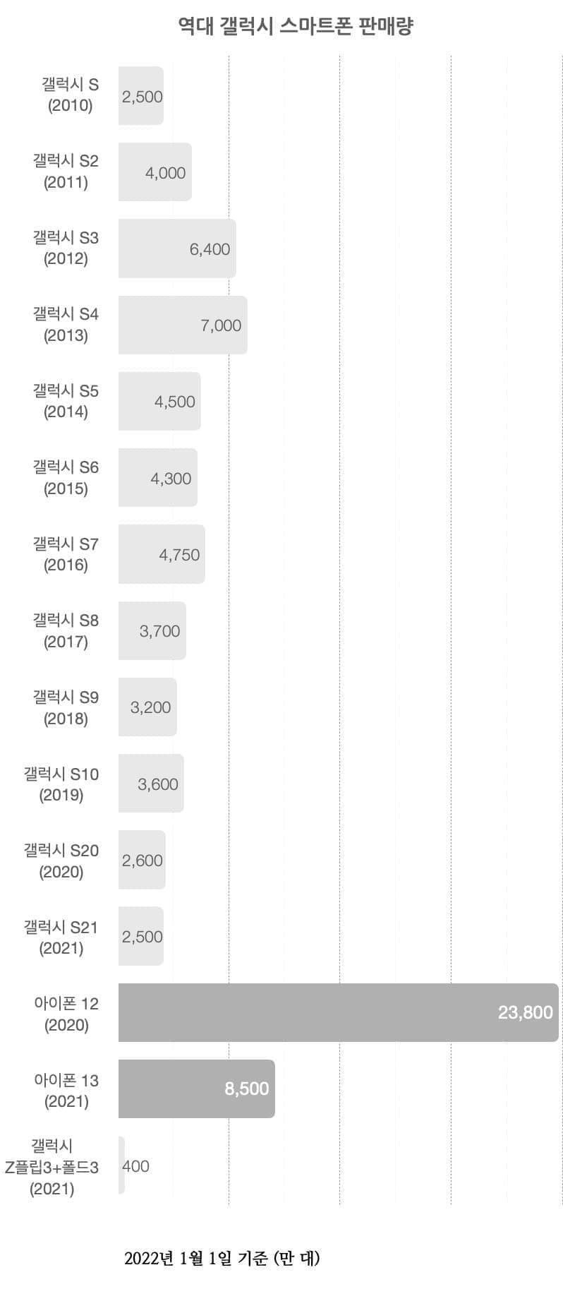 플래그십 스마트폰에선 애플에 완전히 패배한 삼성