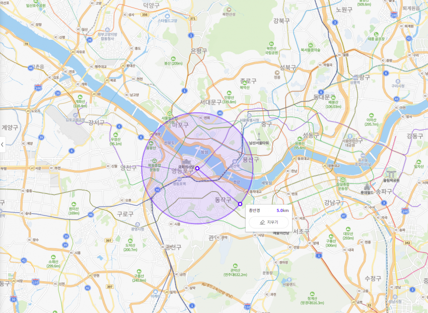 남은 반경 5km가 어느 정도냐 하면,
