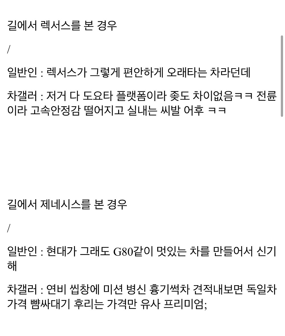 DC) 일반인과 차갤러의 자동차 인식 차이