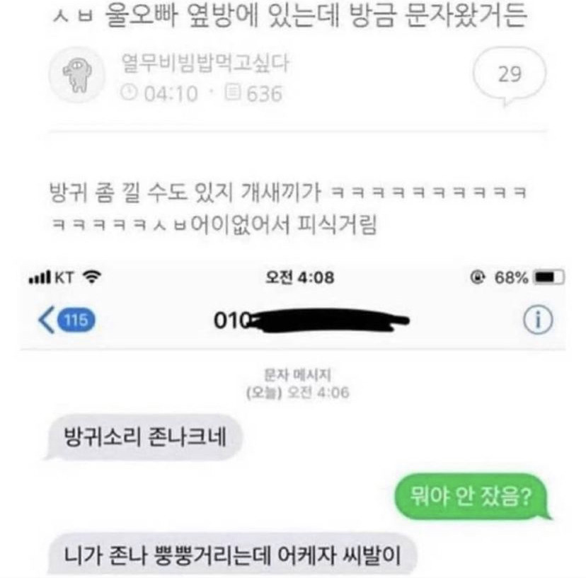ㅅㅂ 울오빠 옆방에 있는데 방금 문자왔거든